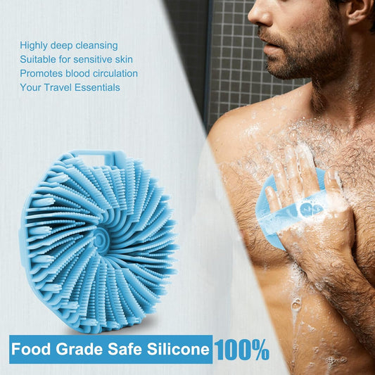 Silicone Body Scrubber, Body Wash Scrubber, Shower Scrubber for Body, Non-Slip Handle for Easy Cleaning, Travel Friendly (Blue)