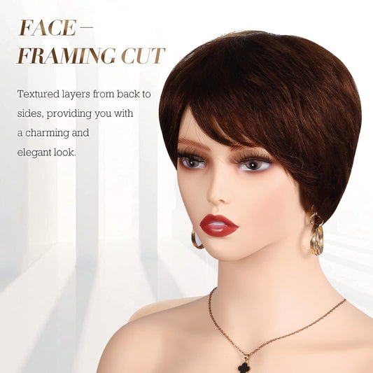 Short Human Hair Wigs for Women Pixie Cut Wig Haman Hair with Bangs Layered Short Hair Wigs Full Machine Made Wigs Brown Wig Party Daily Use(4#)